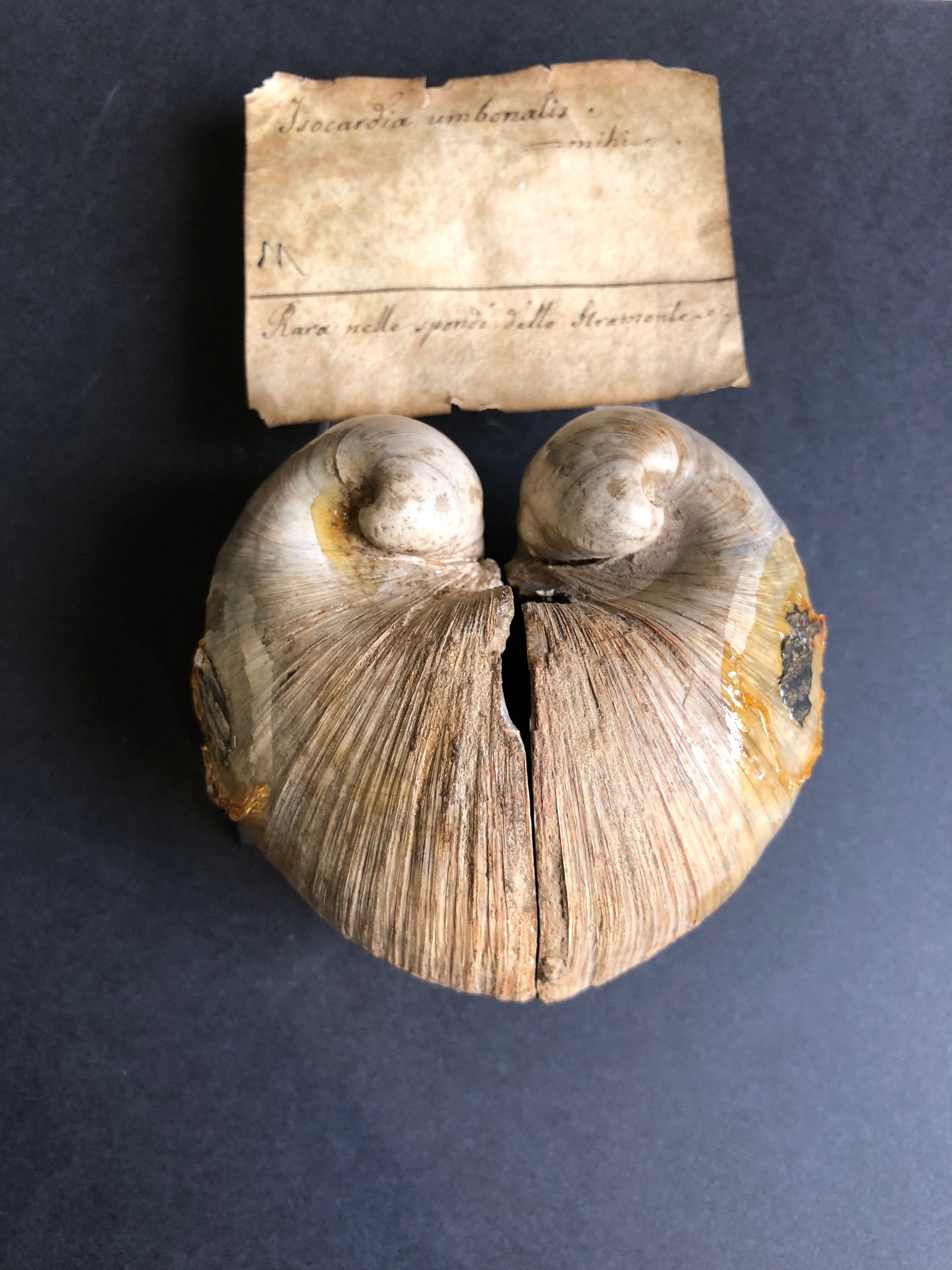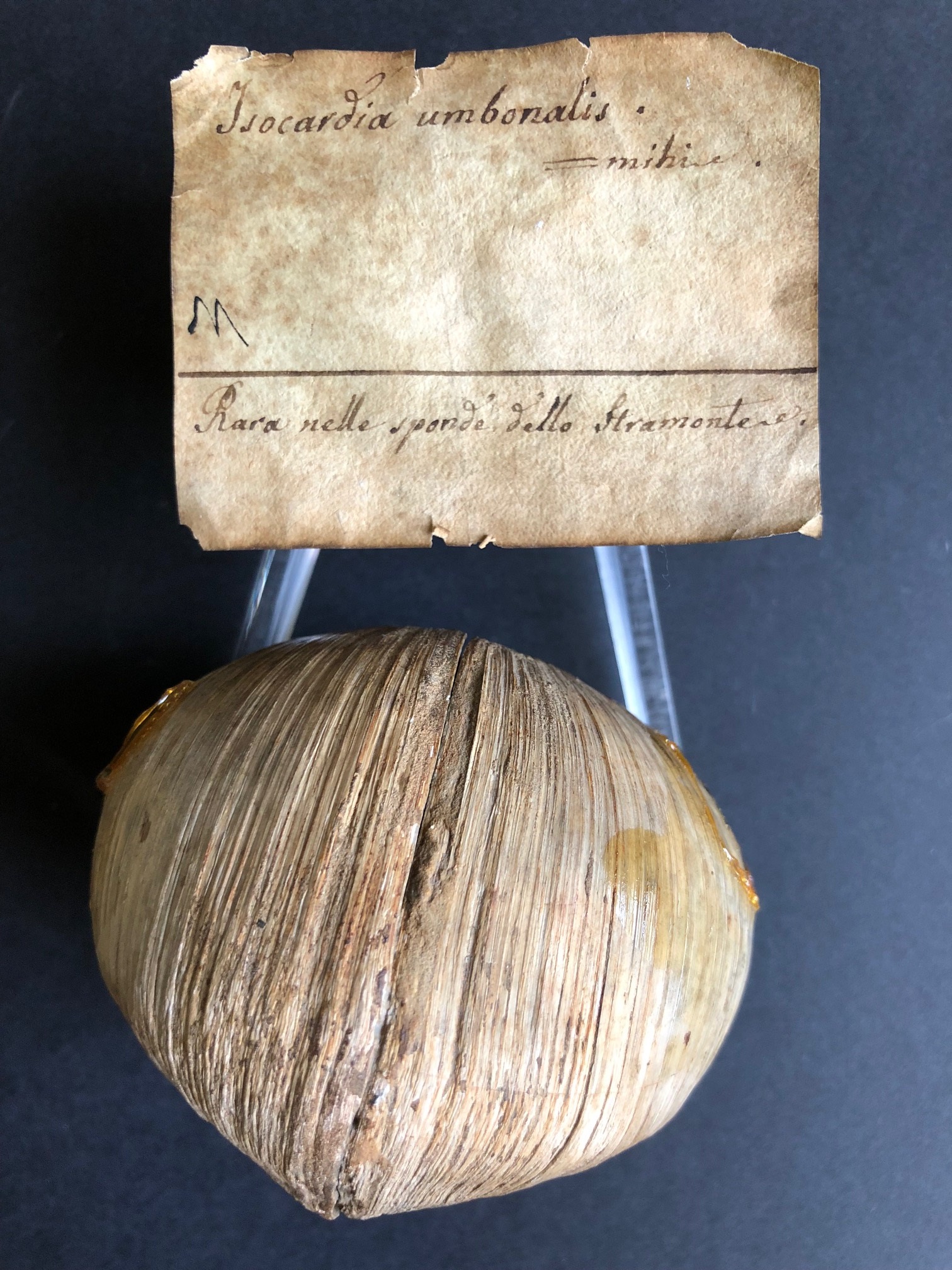 ( pag. 682 Linnaeus, C. (1758). Systema Naturae per regna tria naturae, secundum classes, ordines, genera, species, cum characteribus, differentiis, synonymis, locis. Editio decima, reformata. Laurentius Salvius: Holmiae. ii, 824 pp.) ; Sono rimasto incerto talora se questa conchiglia dovesse considerarsi una varietà dell'I. cor, o se potesse essere elevata a specie distinta. La forma di essa ne è assai diversa, giacchè molto più larga nel senso antero-posteriore, dal centro cioè di una valva al centro dell'altra, ed invece più compressa e raccorciata trasversalmente da un margine anteriore ad un posteriore. Essa non è cordiforme nel modo della precedente, ma la figura del cuore è più allungata ed assume una forma cordato-reniforme vista ai lati, in causa che il profilo che presenta nella sua maggiore convessità imita assai bene il dorso di un rene. Ciascuna valva perciò è più allungata e più stretta trasversalmente. Tu' angolo anteriore che è appena marcato nell' I. cor si fa nella nostra specie assai prominente, deviando così il margine anteriore dalla sua rotondità, che presenta nell' I. cor. Altre due coste od angoli più rotondati offre nella sua parte posteriore, angoli che prendono origine da ogni umbone: l'un d' essi più apparente obbliquamente si dirige verso la parte mediana della valva e guadagna il margine inferiore, circa alla sua metà, e l'altro più ottuso scorre più d' appresso al margine posteriore e dopo breve tratto si va a perdere in esso. Gli umboni sono grossi, ad apici involuti e terminati in punta, separati fra loro e dall' angolo anteriore per un profondissimo incavo. Il margine cardinale è quasi eguale a quello dell'I. cop, invece l'intero margine ventrale assume una figura quasi quadrangolare in causa delle sporgenze o degli angoli esterni alle valve che vengono ad abutire a vari punti di esso. La superficie d' ogni valva poi è percorsa trasversalmente da linee di accrescimento numerosissime ed assai rilevate, segnatamente verso il margine inferiore. Il cardine e le impressioni interne sono esattamente come nella precedente specie. Lo spessore di ciascuna valva è in ogni punto maggiore di quello che si ha negli esemplari d' I. cor.